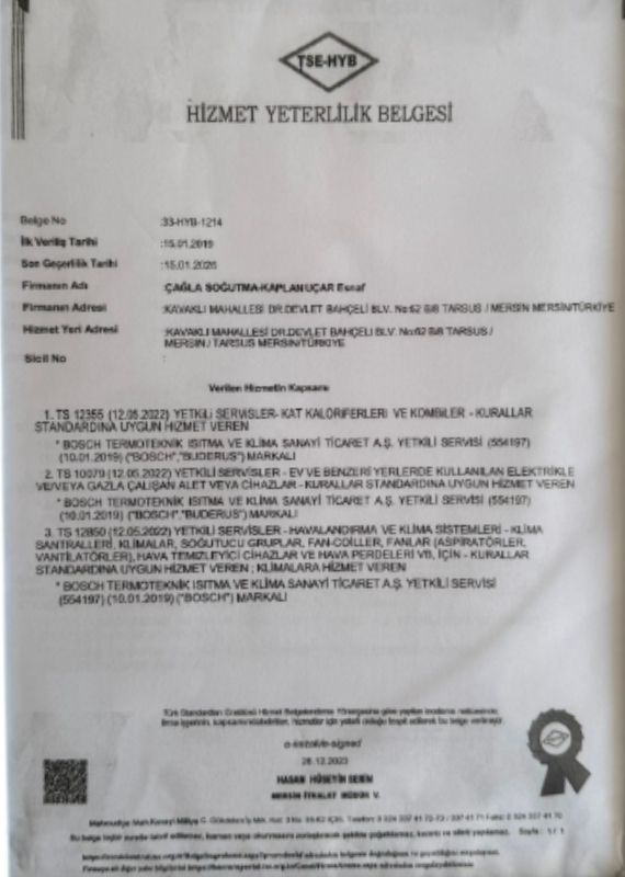 TİCARET ÜNVANI:ÇAĞLA SOĞUTMA Bosch & Buderus Yetkili Servisi